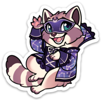 This 3" vinyl sticker features an adorable chibi masquerade raccoon!