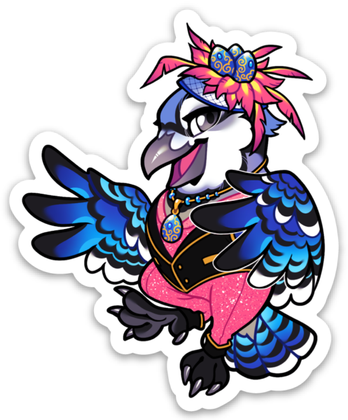 This 3" vinyl sticker features an adorable chibi festive blue jay!