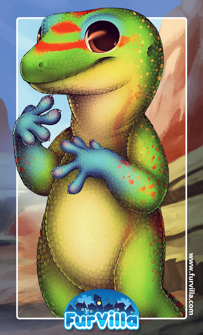 This 4.5" x 2.5" laminated badge features high quality double-sided laser printing. An adorable image of a gecko adorns the front. Furvilla's logo appears on the back.