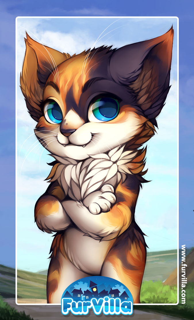 This 4.5" x 2.5" laminated badge features high quality double-sided laser printing. An adorable image of a calico cat adorns the front. Furvilla's logo appears on the back.
