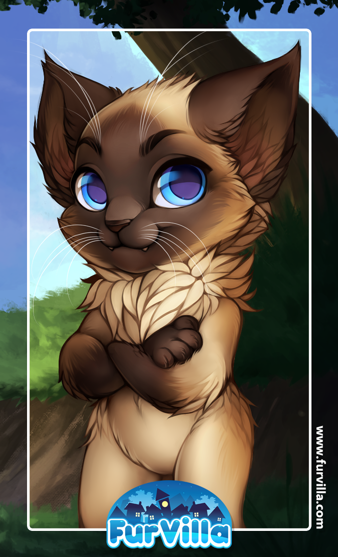 This 4.5" x 2.5" laminated badge features high quality double-sided laser printing. An adorable image of a Siamese cat adorns the front. Furvilla's logo appears on the back.