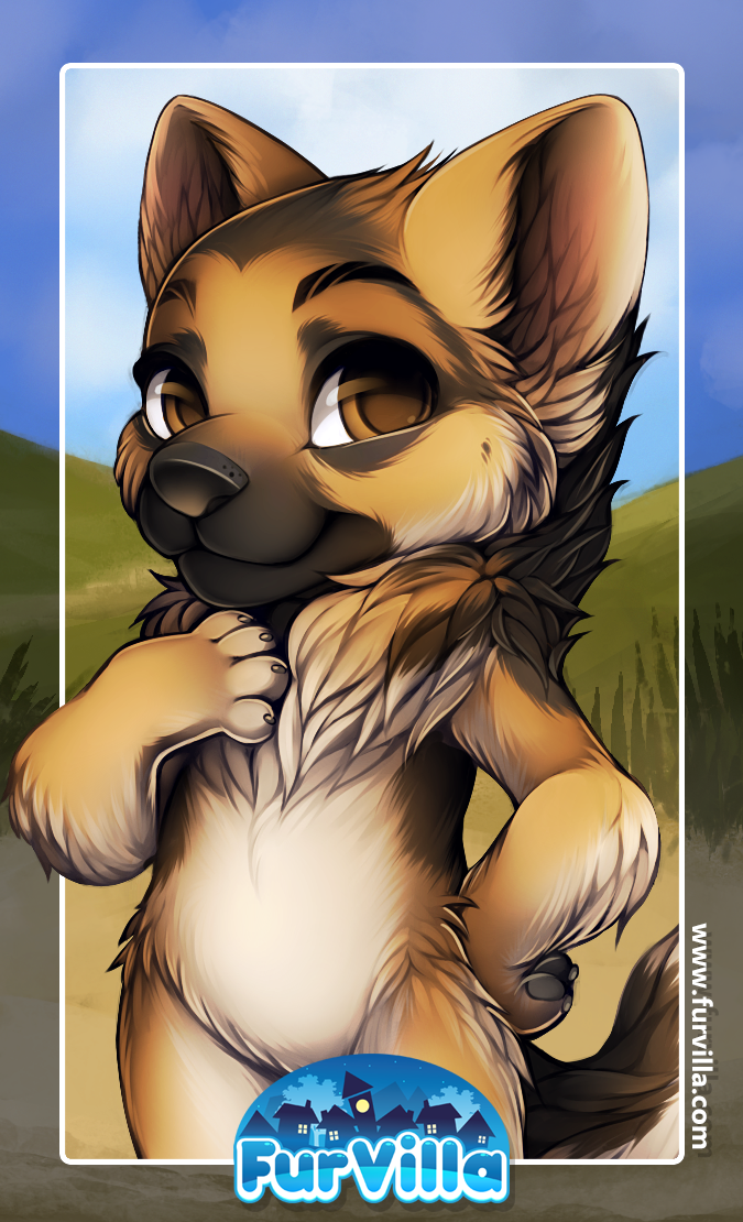 This 4.5" x 2.5" laminated badge features high quality double-sided laser printing. An adorable image of a German Shepherd adorns the front. Furvilla's logo appears on the back.