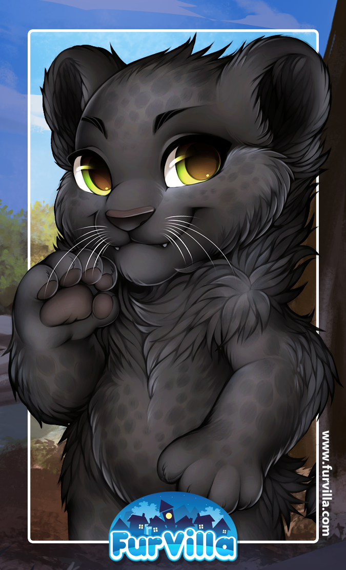 This 4.5" x 2.5" laminated badge features high quality double-sided laser printing. An adorable image of a black panther adorns the front. Furvilla's logo appears on the back.
