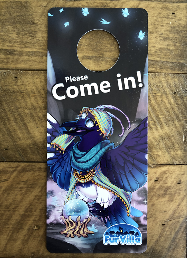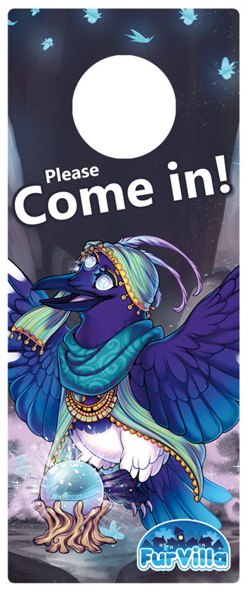 This glossy 3.5" x 8.5" Furvilla door hanger features artwork of The Oracle!