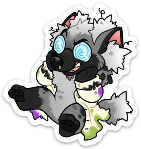 This 3" vinyl sticker features a chibi hyena mad scientist!