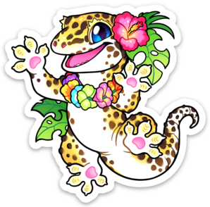 This 3" vinyl sticker features an adorable chibi tropical gecko!