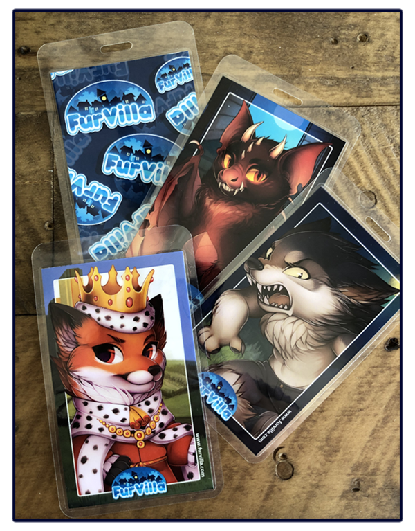 This 4.5" x 2.5" laminated badge features high quality double-sided laser printing. An adorable mutant rat adorns the front. Furvilla's logo appears on the back.